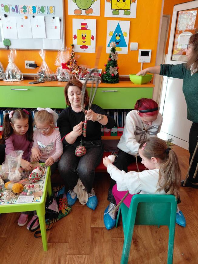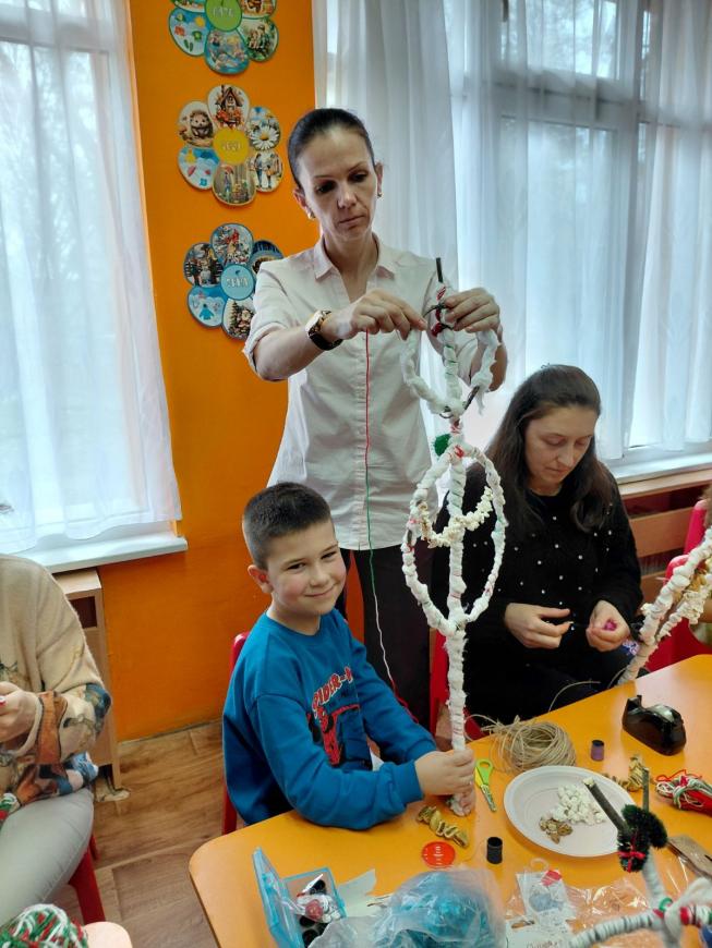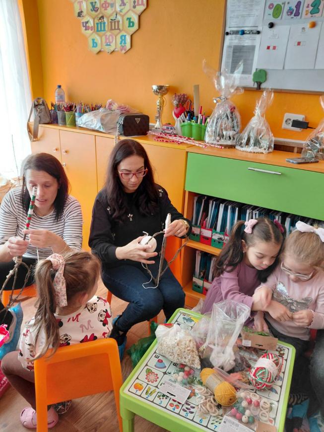 Фотогалерия » 26.11.2025г. Децата от група "Пчеличка" технете майки и госпожи се включиха в "Коледната работилничка" сътвориха чудни сурвачки за Коледния базар на ДГ "Чайка".