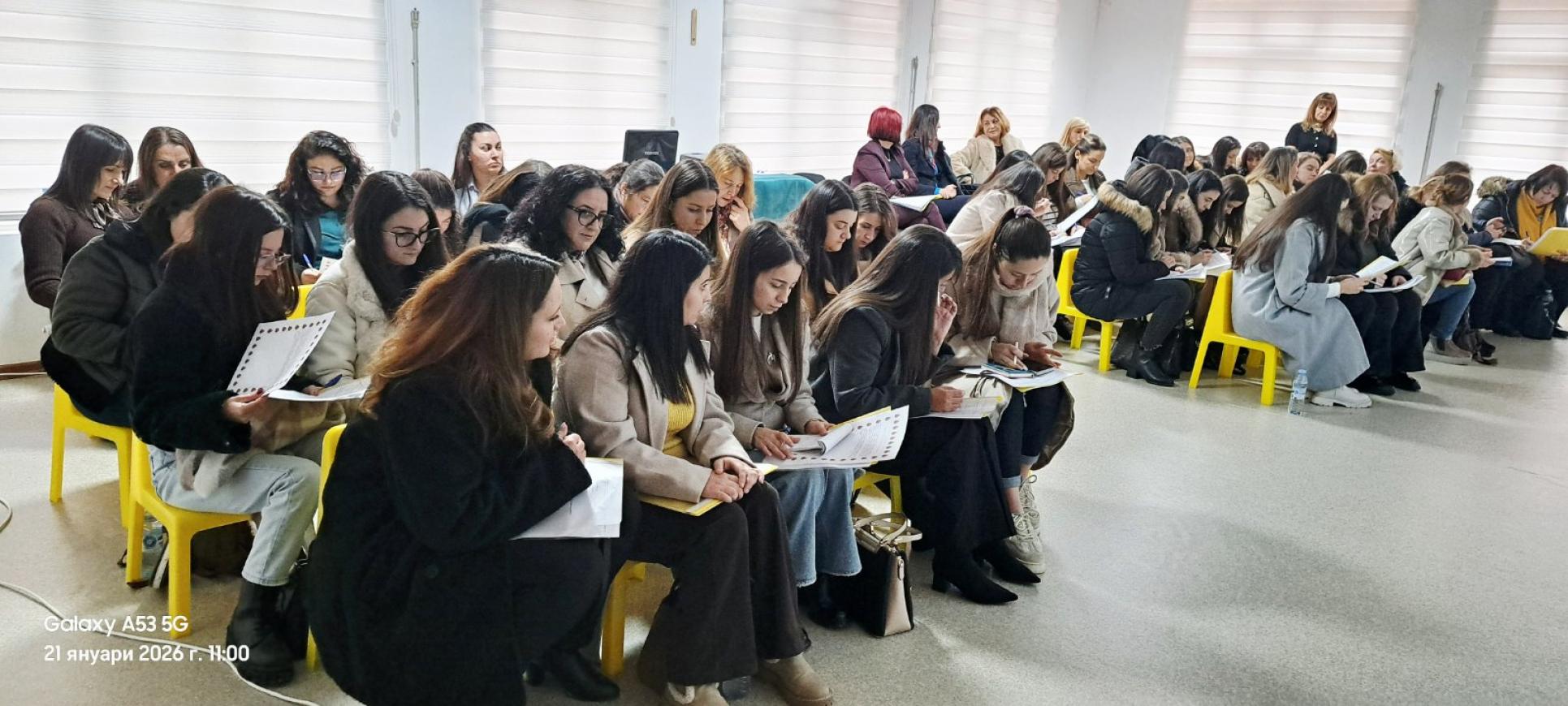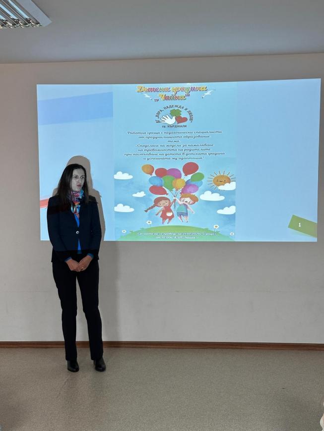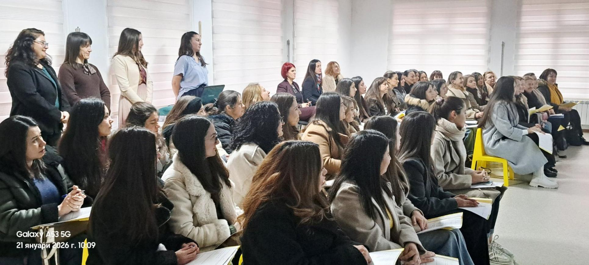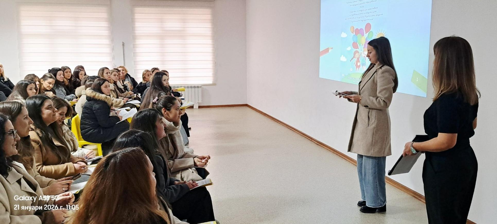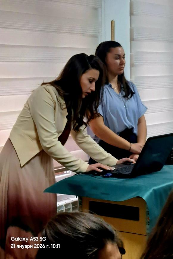 Фотогалерия » 21.01.2026г. Работна среща с педагогически специалисти от предучилищното образование на тема: "Споделяне на модели за намаляване на тревожността на родителите при постъпване на детето в детската градина и успешната му адаптация"