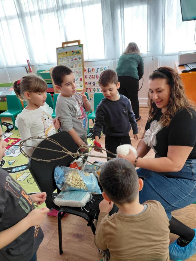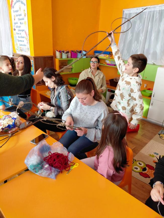 Фотогалерия » 26.11.2025г. Децата от група "Пчеличка" технете майки и госпожи се включиха в "Коледната работилничка" сътвориха чудни сурвачки за Коледния базар на ДГ "Чайка".
